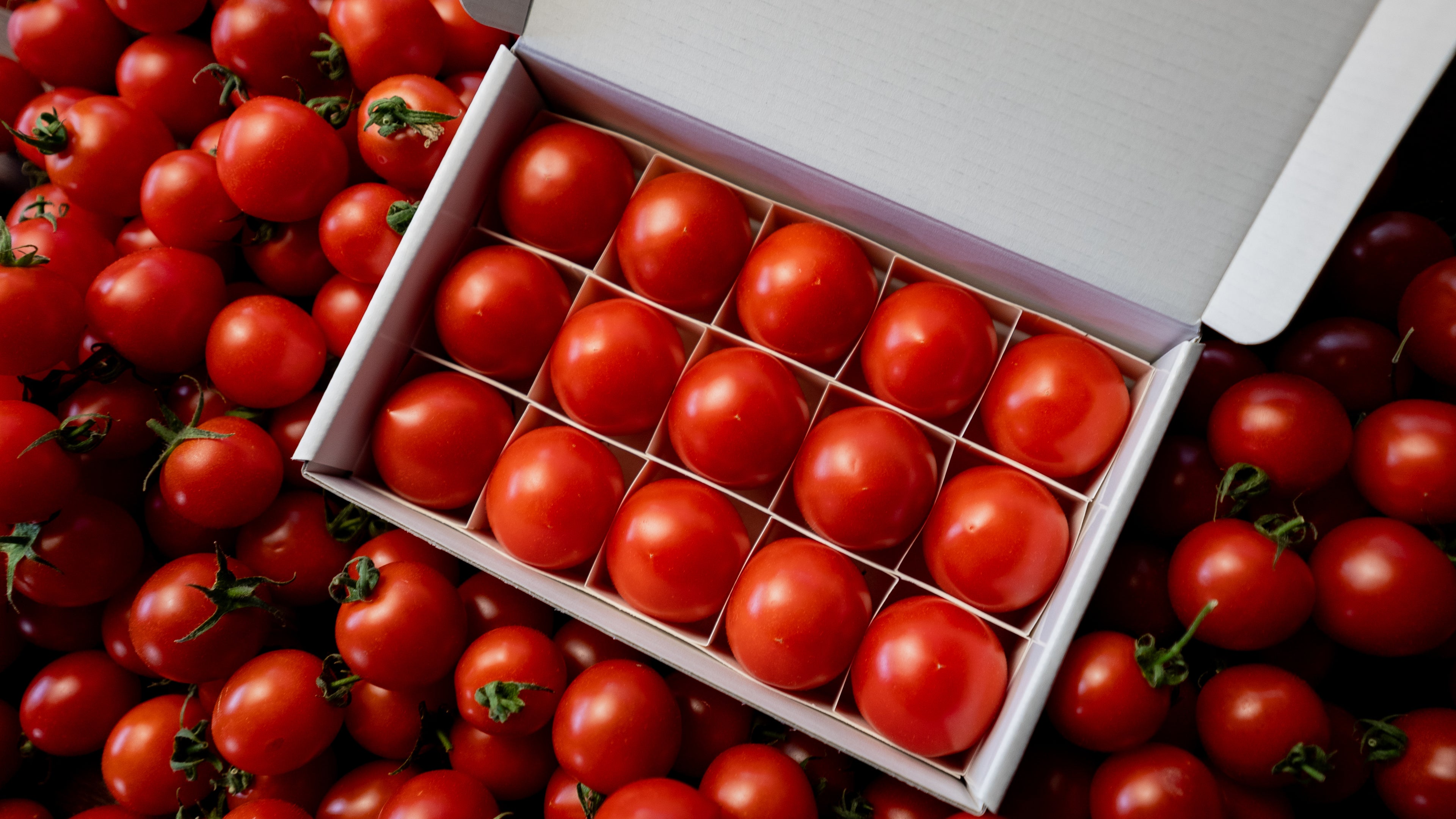 糖度9度以上で濃厚な味わいのフルーツトマトを厳選し、化粧箱に詰めてお届けいたします。